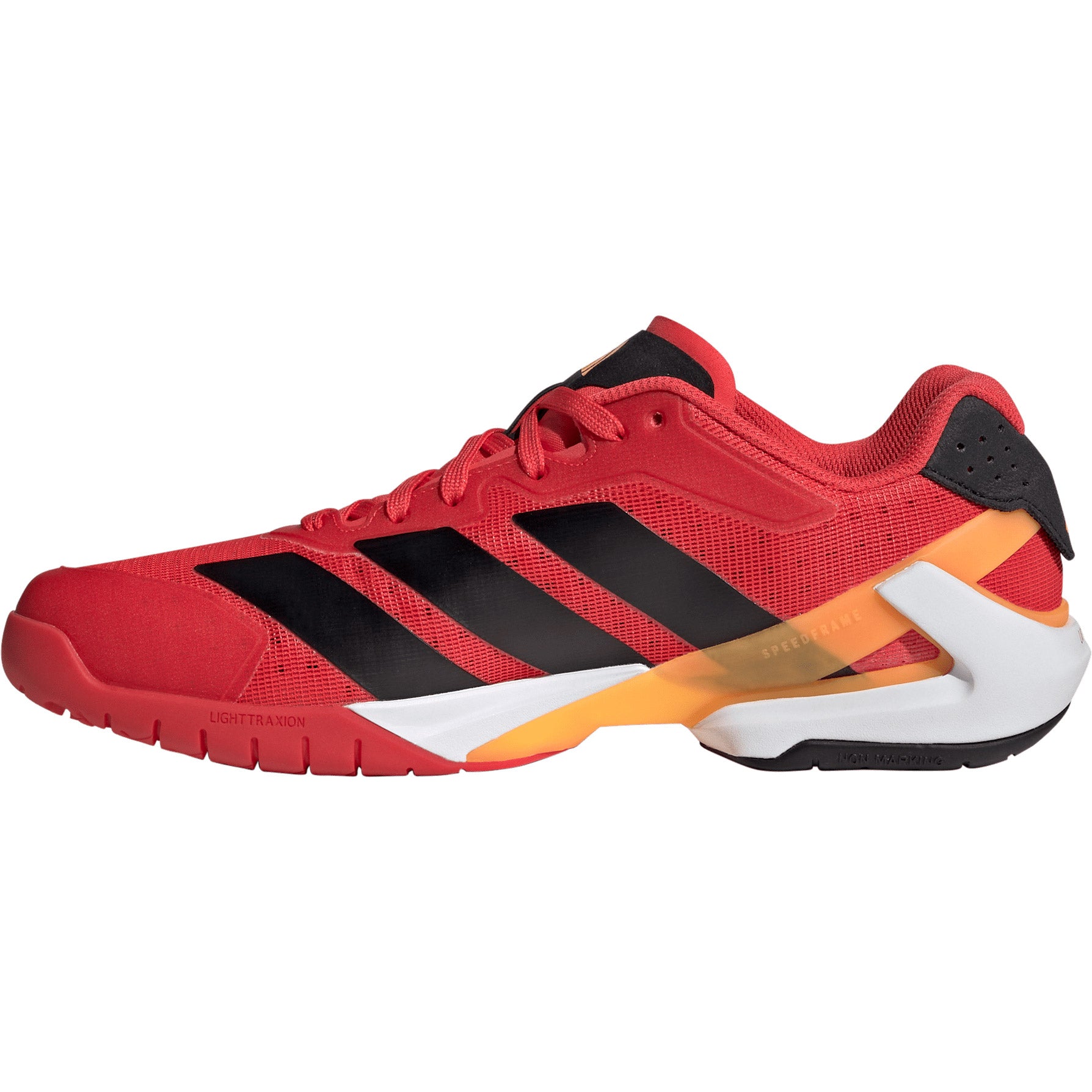 Le châssis Speedframe assure un maintien dynamique, tandis que la semelle extérieure Traxion garantit une accroche optimale lors des changements de direction rapides.